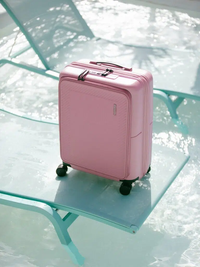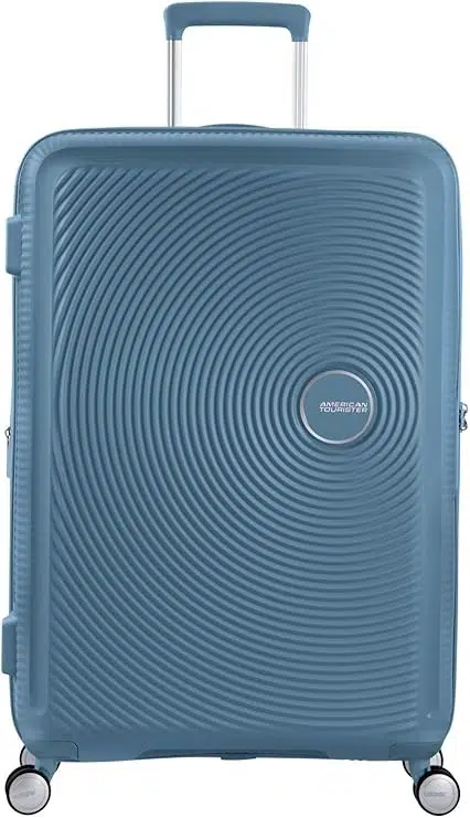 - American Tourister Soundbox – Valise rigide ultra-légère (3,8 kg) avec intérieur compartimenté et coque résistante aux chocs. Capacité : 68 L, disponible en noir, rose et bleu. Idéale pour ceux qui veulent voyager léger sans sacrifier la protection de leurs affaires. Voir le modèle