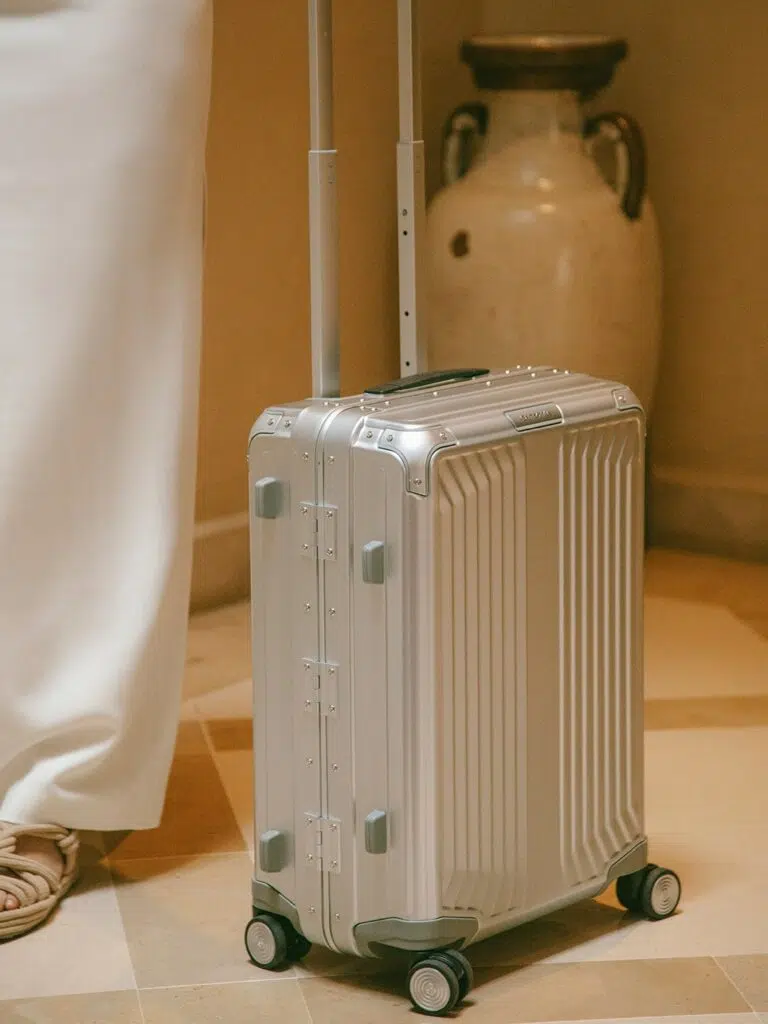 - Rimowa Essential Cabin S – Une valise cabine compacte idéale pour les voyages en avion. Fabriquée en polycarbonate résistant aux chocs, elle reste légère (4 kg) tout en protégeant vos affaires. Les roulettes silencieuses à 360° assurent une maniabilité parfaite dans les aéroports, et son intérieur est compartimenté pour organiser vos vêtements et accessoires. Capacité : 32 L, disponible en plusieurs couleurs élégantes. Voir le modèle