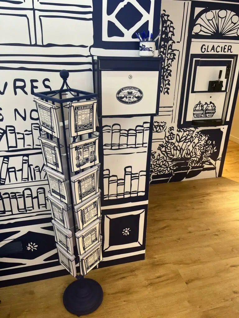 Sur une jolie table près de la librairie, on peut s’asseoir, prendre un stylo, et écrire une carte postale. Pas besoin d’avoir quelque chose de grandiose à raconter : un mot doux, une pensée du jour, une envie d’avenir suffit.