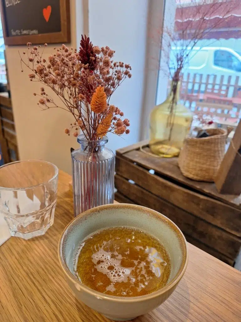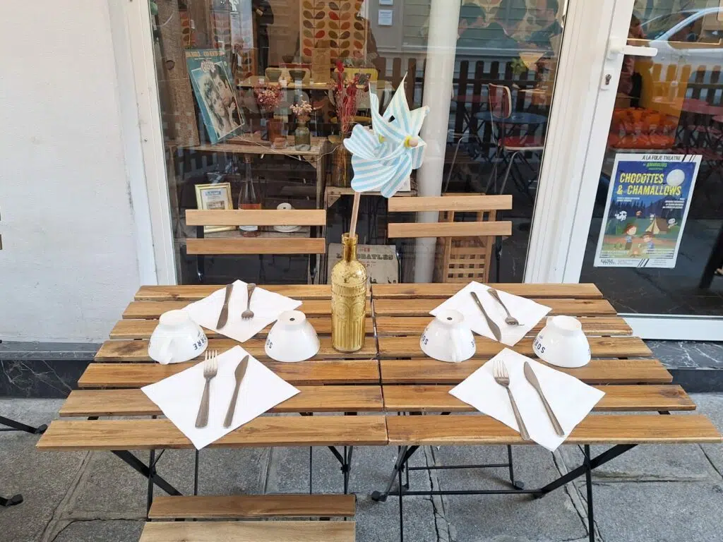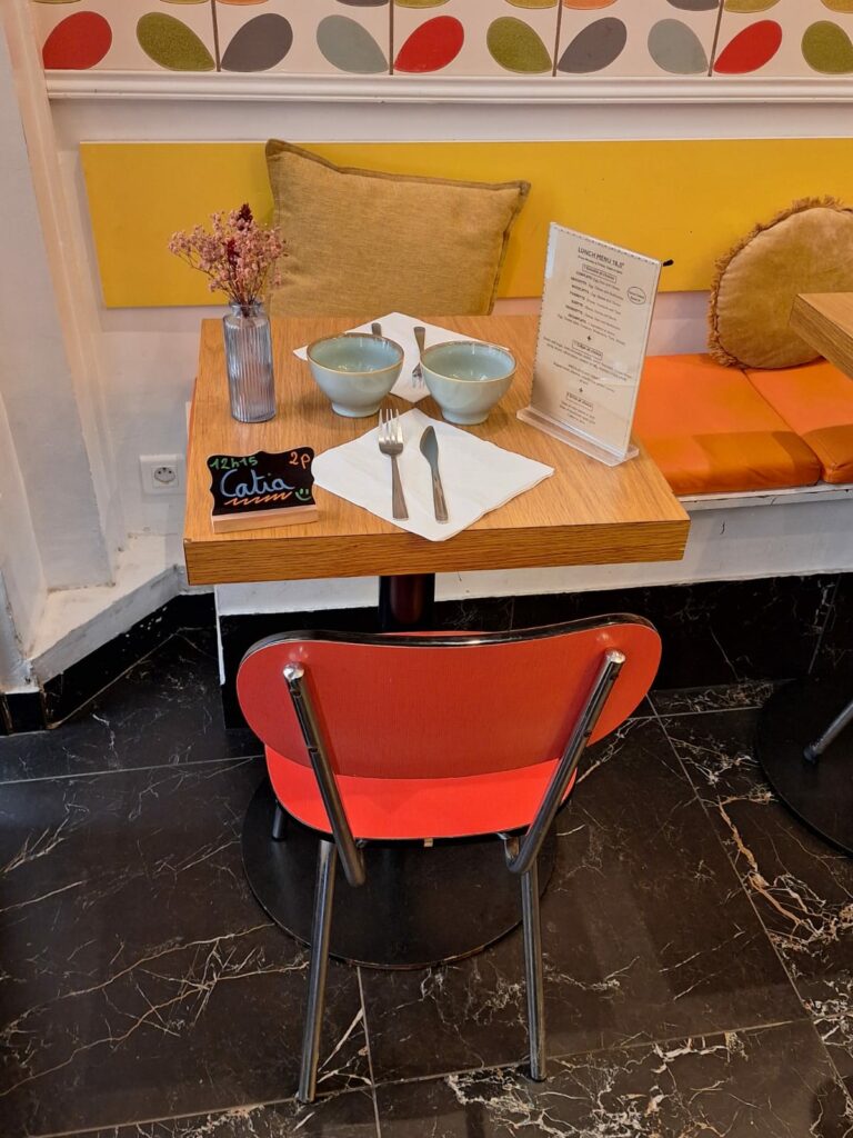 Dès qu’on passe la porte, on sent que Lucette a voulu recréer une atmosphère familiale. Les tables en bois, les objets chinés et les détails un peu rétro donnent un charme unique. Ce n’est pas une grande salle, et oui, les tables sont parfois rapprochées, mais c’est exactement ce qui crée cette ambiance conviviale : on discute, on rit, on partage.