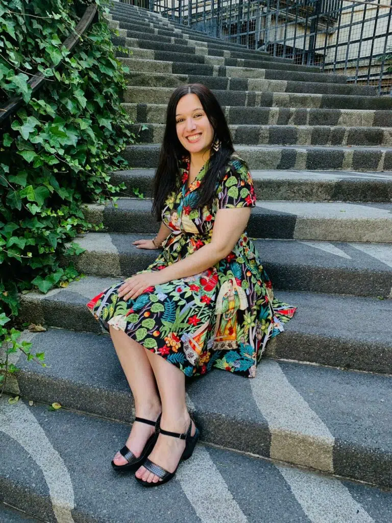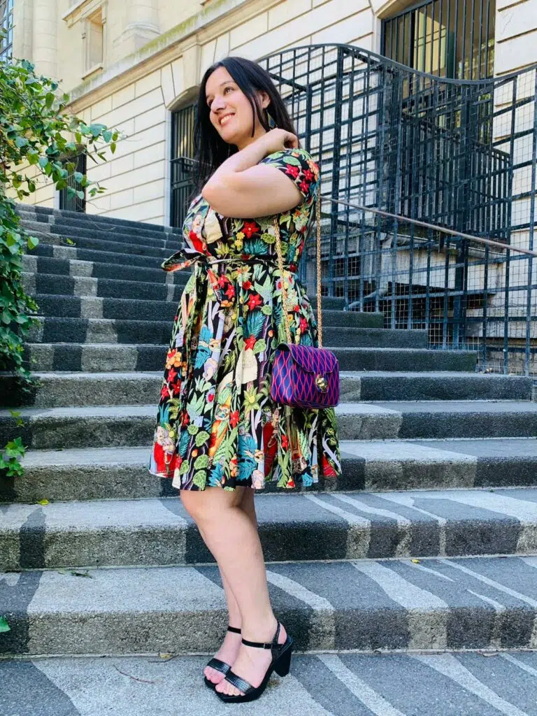 Pour cet été, j’ai opté pour une robe années 50 antillaise qui est un patchwork de couleurs aux motifs champêtres. Les fans de Frida Kahlo y trouveront leur compte. Je suis d’habitude plutôt adepte des couleurs unies mais cette année j’ai ressenti le besoin d’un renouveau et je suis contente du résultat.