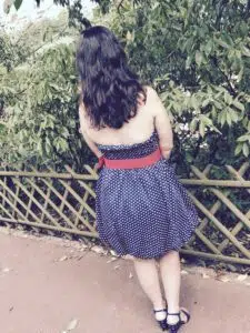 Pour cet été, j’ai opté pour une robe années 50 antillaise qui est un patchwork de couleurs aux motifs champêtres. Les fans de Frida Kahlo y trouveront leur compte. Je suis d’habitude plutôt adepte des couleurs unies mais cette année j’ai ressenti le besoin d’un renouveau et je suis contente du résultat.