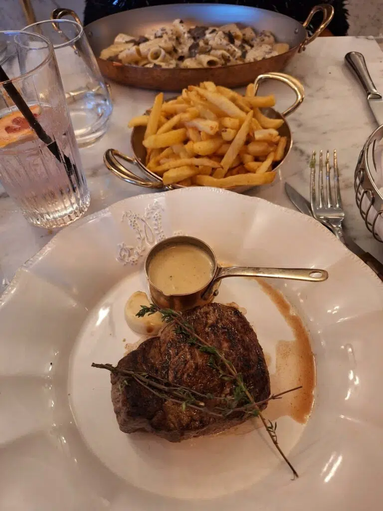 En entrée, vous pourrez choisir parmi un large choix de mets: œufs mimosa, gratinée à l’oignon, huitres fine ou encore foie gras de canard au Bourbon. Si vous souhaitez déjeuner sur le pouce, vous pourrez vous jeter sur les coquillettes jambon truffe ou un toast avocat.