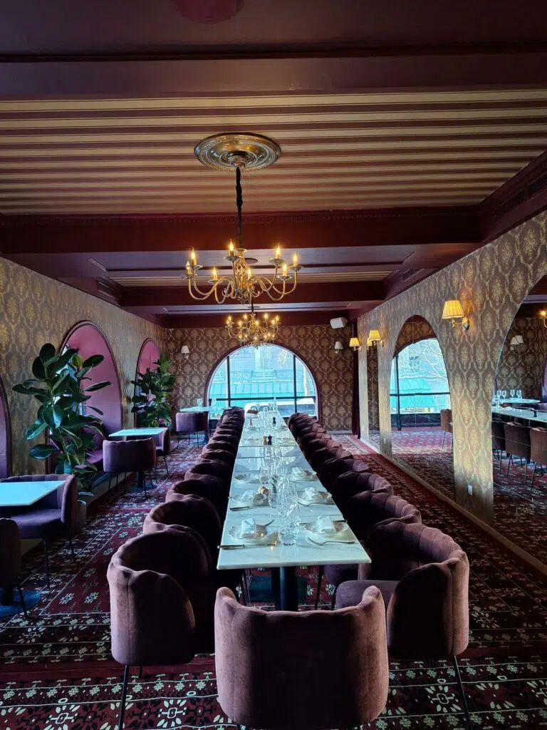 Magdalena se distingue par sa magnifique devanture rouge, tel un théâtre de renom qui attendrait ses invités. Une fois à l’intérieur, on y découvre un bar en marbre servant vos cocktails préférés. Des tables soigneusement préparées se dressent par dizaines afin d’accueillir les convives. Un escalier vous mène au deuxième étage, destiné aux évènements privés. Un vrai petit hôtel particulier qui rayonne à travers ses gigantesques baies vitrées et ses longs miroirs.