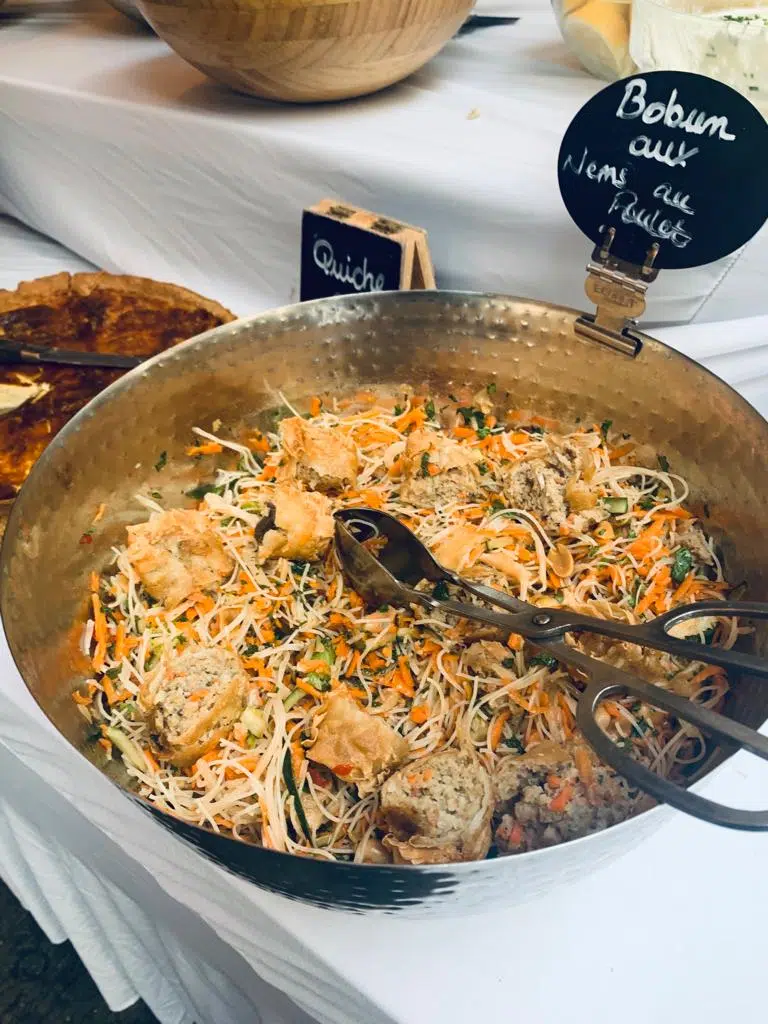 - Le salé n’est pas en reste: bacon, saucisses américaine, flageolets, espadon à l’ananas, nems, salade de légumes, salade de pates, charcuterie, poulet colombo raviront vos papilles.