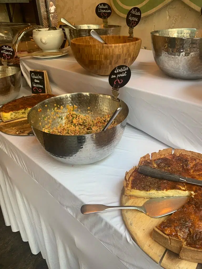 - Viennoiseries, en veux tu en voilà: mini pains au chocolat, croissant, pains au raisons, brioche. Des confitures, miel et nutella sont également à votre disposition. Pour les enfants, des brochettes de chamallows sont offertes.