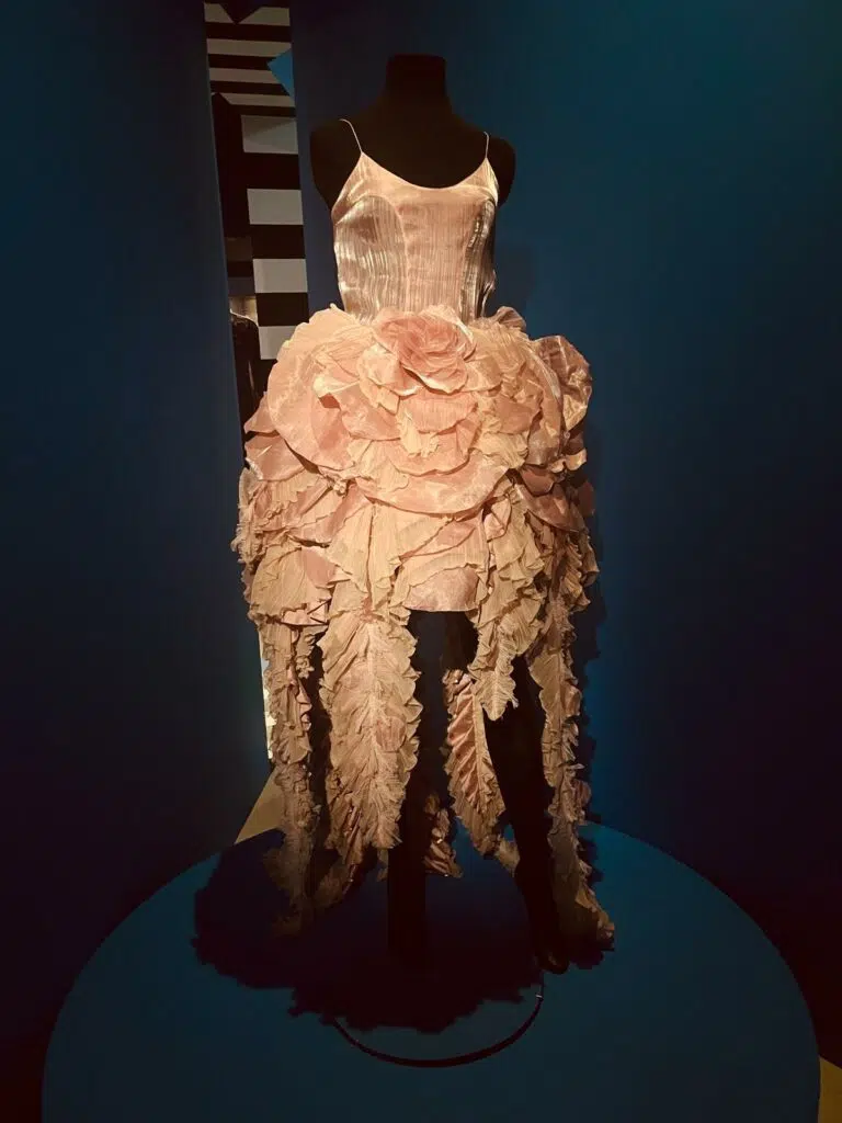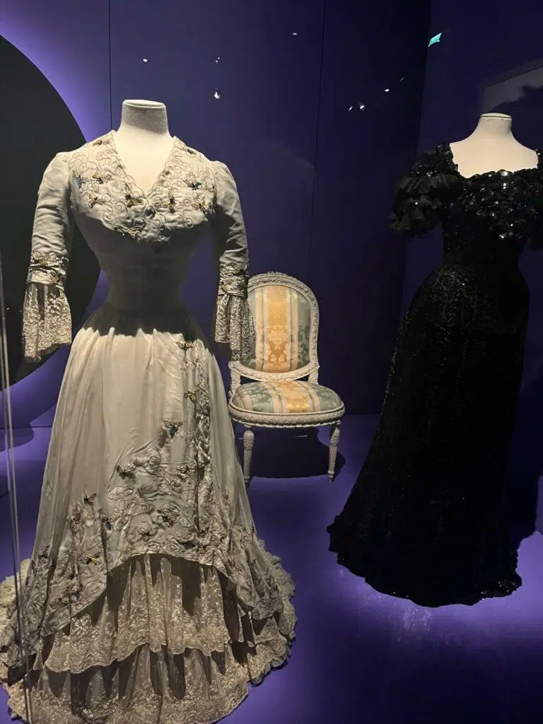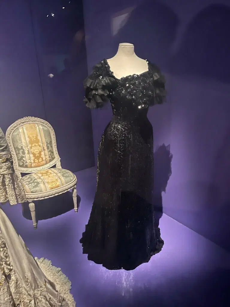 La scénographie est à la hauteur : on ne se contente pas de regarder des robes alignées. On entre dans une atmosphère festive, presque théâtrale. On imagine les soirées folles, les musiciens, l’exubérance d’un Paris qui danse.