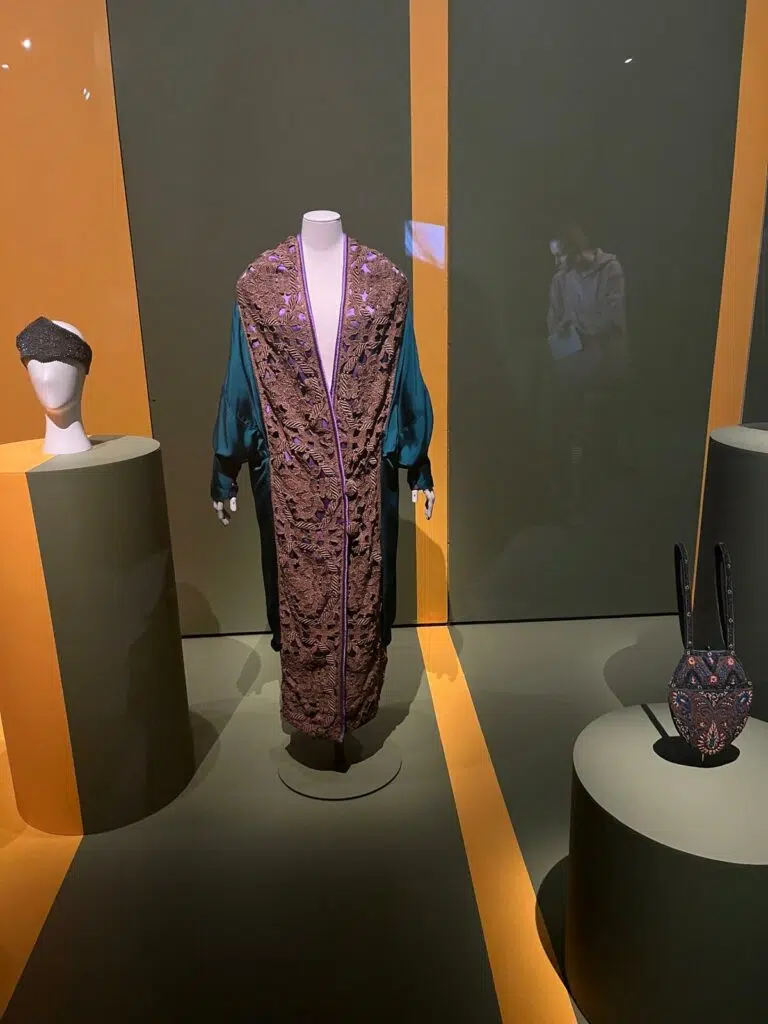 Poiret aimait éblouir. Ses fêtes — dont la fameuse “Mille et deuxième Nuit” — étaient des happenings avant l’heure. Costumes, décors, parfums, musique : tout était orchestré pour que la mode devienne un spectacle total. C’est cet esprit que l’exposition restitue, avec des reconstitutions d’ambiances et des pièces incroyables comme des manteaux persans, des robes aux broderies foisonnantes ou des silhouettes inspirées du kimono.