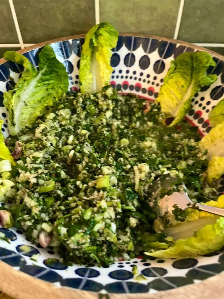Envie d’une bonne salade orientale? Vous pourrez jeter votre dévolu sur le taboulé d’hiver ou la salade de chankikch (fromage aux herbes, avocat, endives, noix, clémentines …).