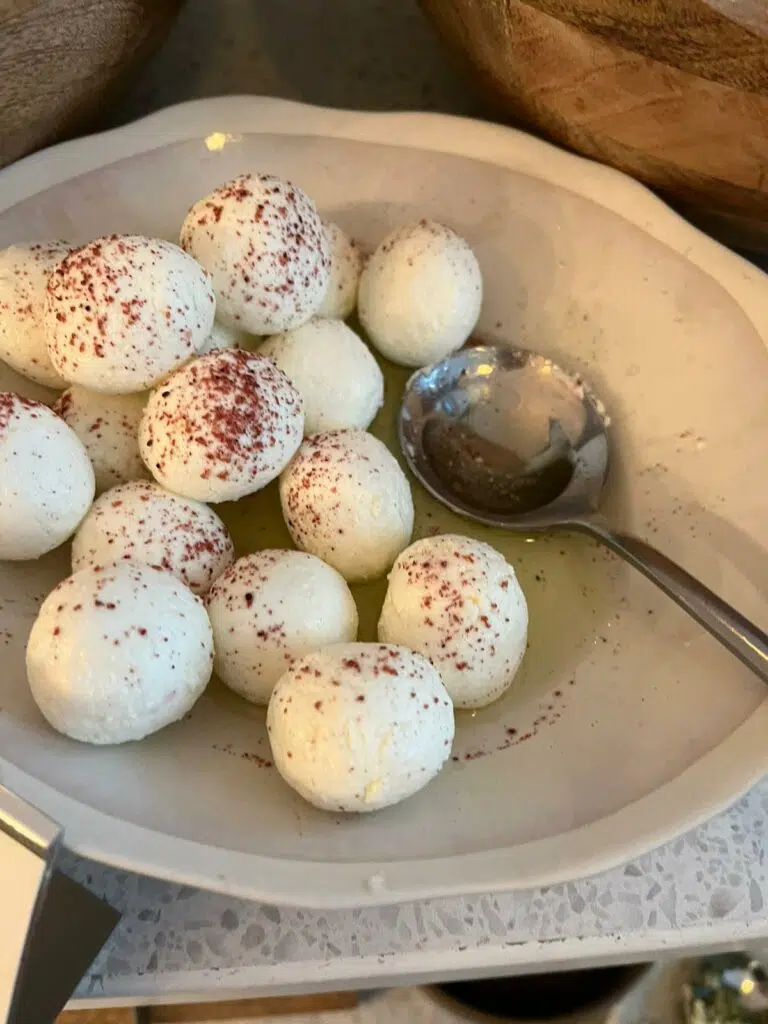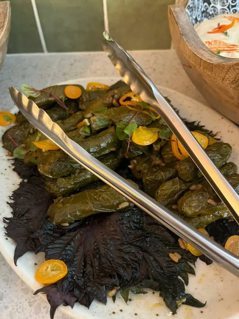 Au menu des plats traditionnels libanais avec le célèbre houmous, les beignets aux épinards et pignons de pain ainsi que des créations originales telles que des chaussons à la fêta et menthe. Un vrai régal en bouche pour une entrée en matière. Les couleurs dans les assiettes sont un plaisir que nous ne dissimulons pas.