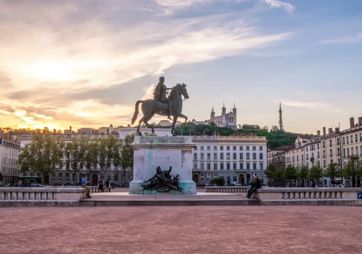 Immense et majestueuse, la place Bellecour est l’un des plus grands espaces piétons d’Europe. C’est le point central de la ville et le lieu idéal pour observer son rythme. Entre cyclistes, passants et terrasses animées, c’est le cœur vivant de Lyon.