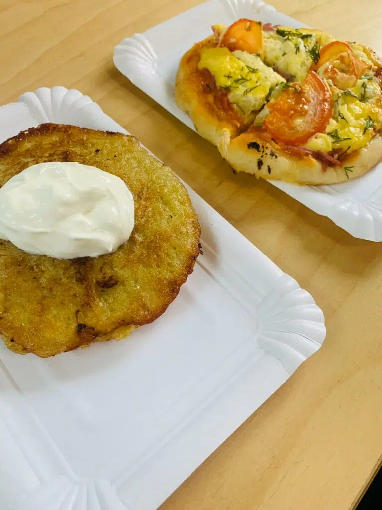 Une partie cantine vous propose de nombreux casse-croute à bas prix: part de pizza à 1€, des pīrāgiPiragi (petits pains fourrés au bacon et aux oignons).