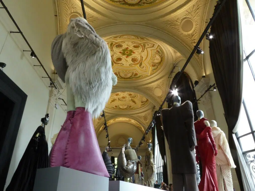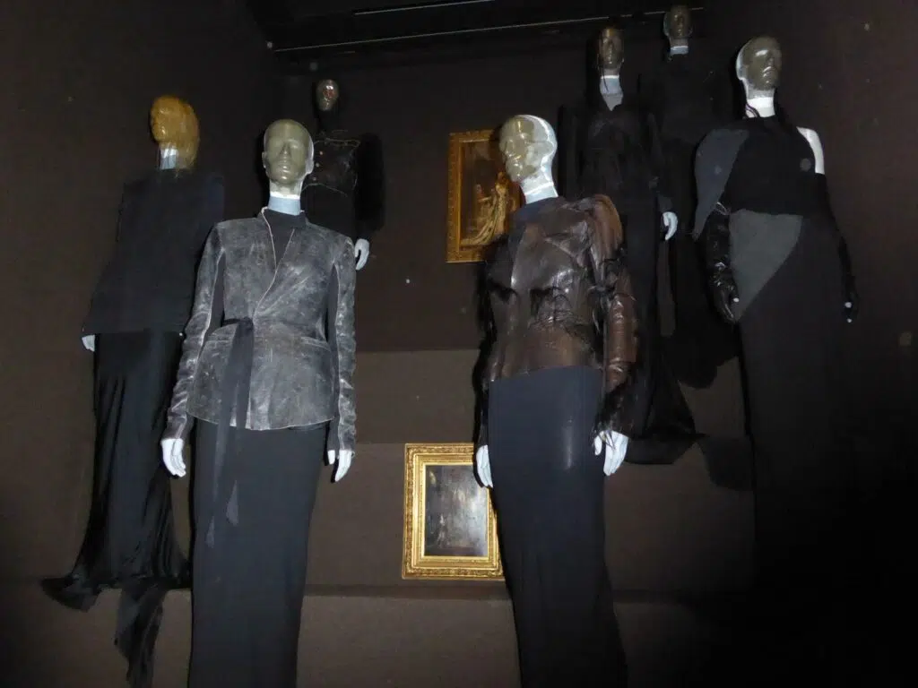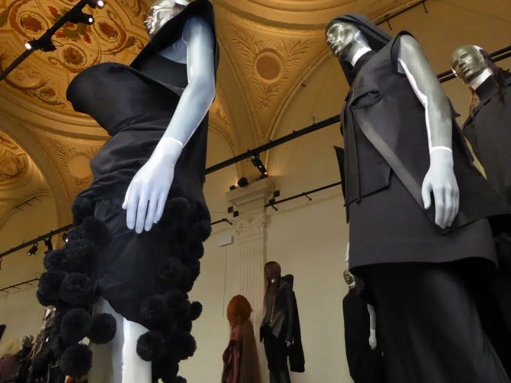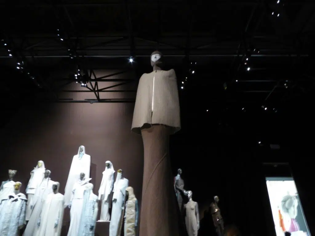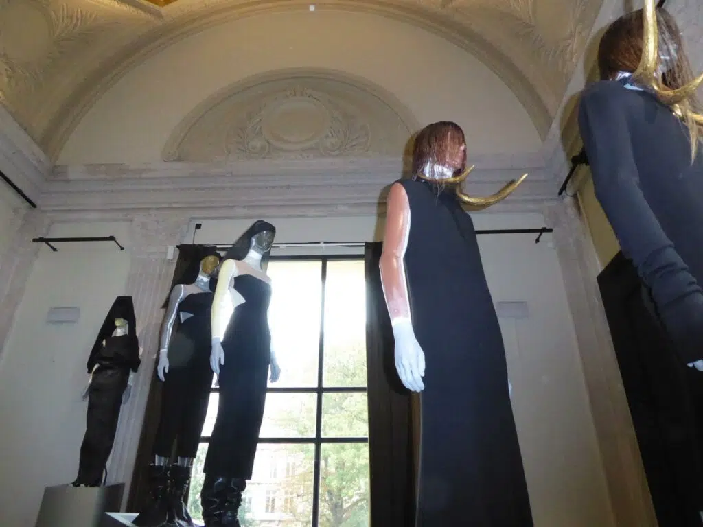 Dès l’entrée, le visiteur est confronté à une façade du musée enveloppée de tissus noirs scintillants, une intervention signée par le créateur lui-même. À l’intérieur, la scénographie se déploie sur plusieurs niveaux, mêlant installations monumentales et pièces iconiques. Chaque espace est conçu comme une chapelle laïque, invitant à la contemplation et à la réflexion.