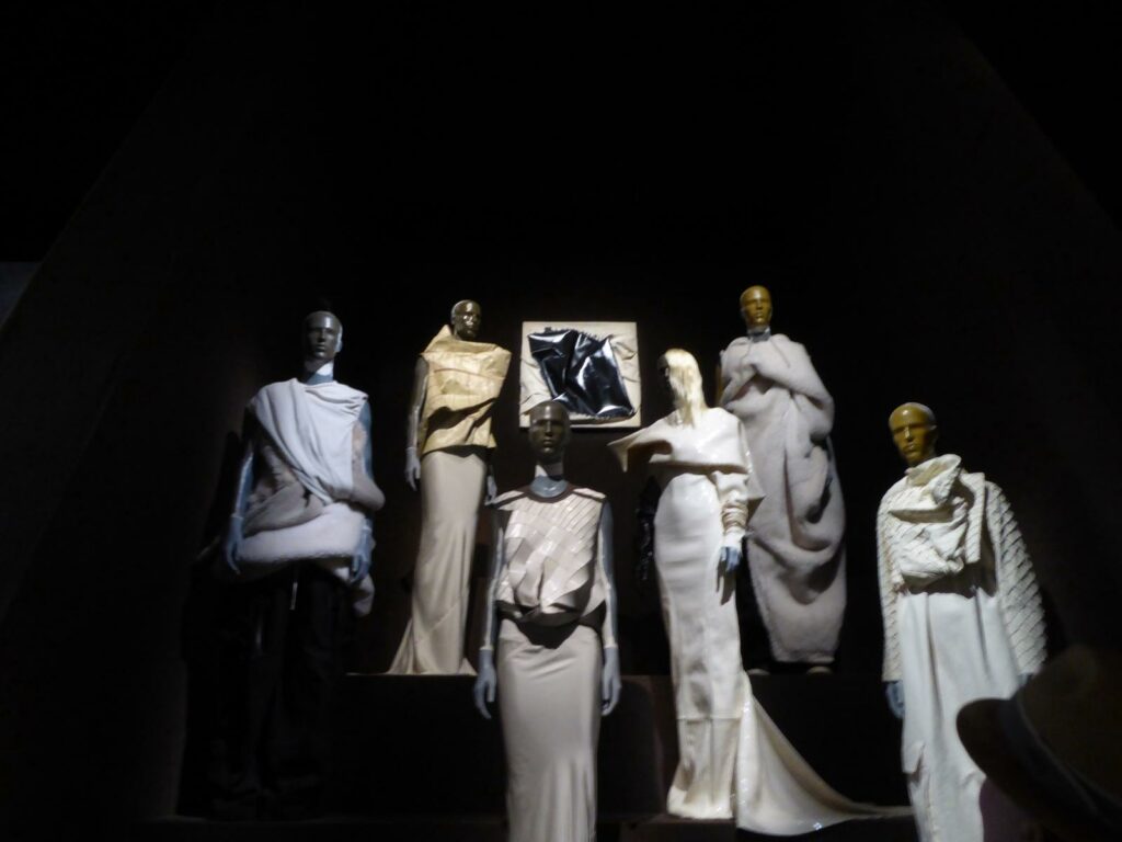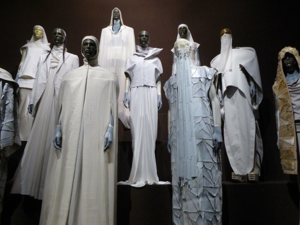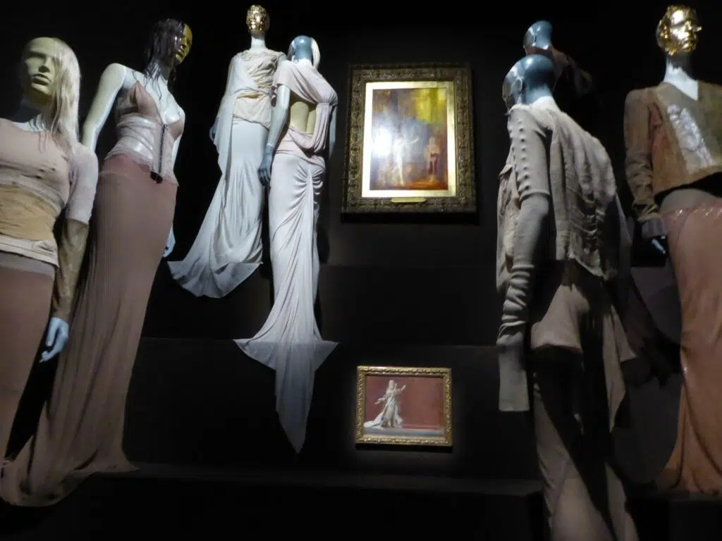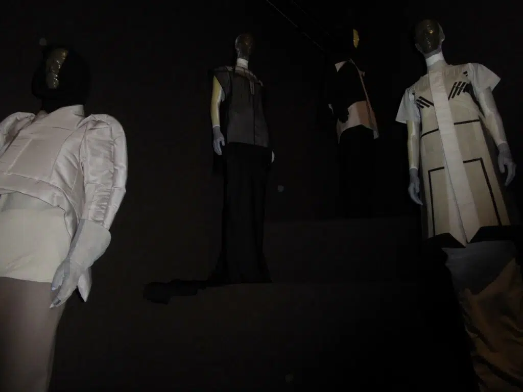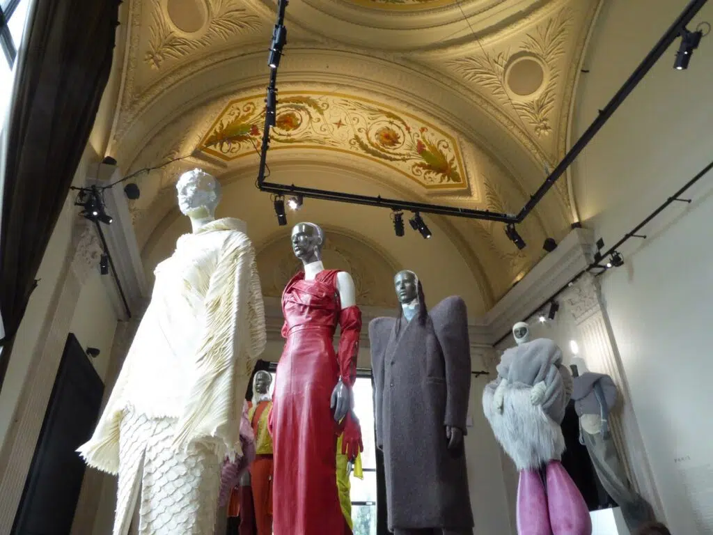 Dès l’entrée, le visiteur est confronté à une façade du musée enveloppée de tissus noirs scintillants, une intervention signée par le créateur lui-même. À l’intérieur, la scénographie se déploie sur plusieurs niveaux, mêlant installations monumentales et pièces iconiques. Chaque espace est conçu comme une chapelle laïque, invitant à la contemplation et à la réflexion.