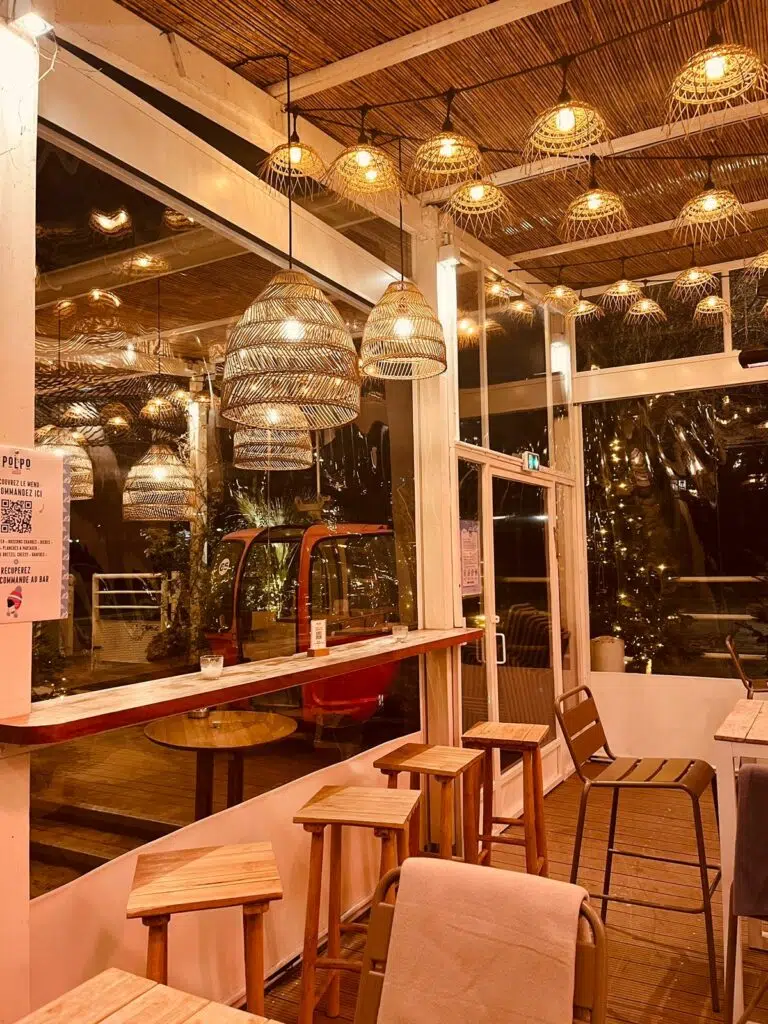 Polpo Nord, c’est avant tout une ambiance cocooning et cosy. Dans ce décor hivernal, vous trouverez tout ce qu’il faut pour vous sentir comme à la maison: des plaids sur les assises, un personnel aux petits soins et des lumières tamisées. Côté animation, vous pourrez vous amuser en famille ou entre amis, sur la piste de curling (unique en Ile de France) et créer des moments inoubliables. Les plus courageux affronteront le froid et passeront un moment dans les télécabines, très originales.