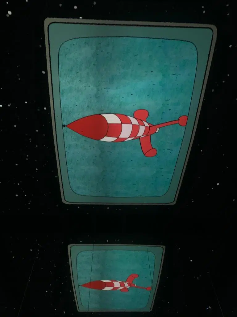 Asseyez vous à même le sol, dans les petites pièces de l’atelier et admirez le décollage de la fusée sur la Lune avec Tintin dans l’espace.