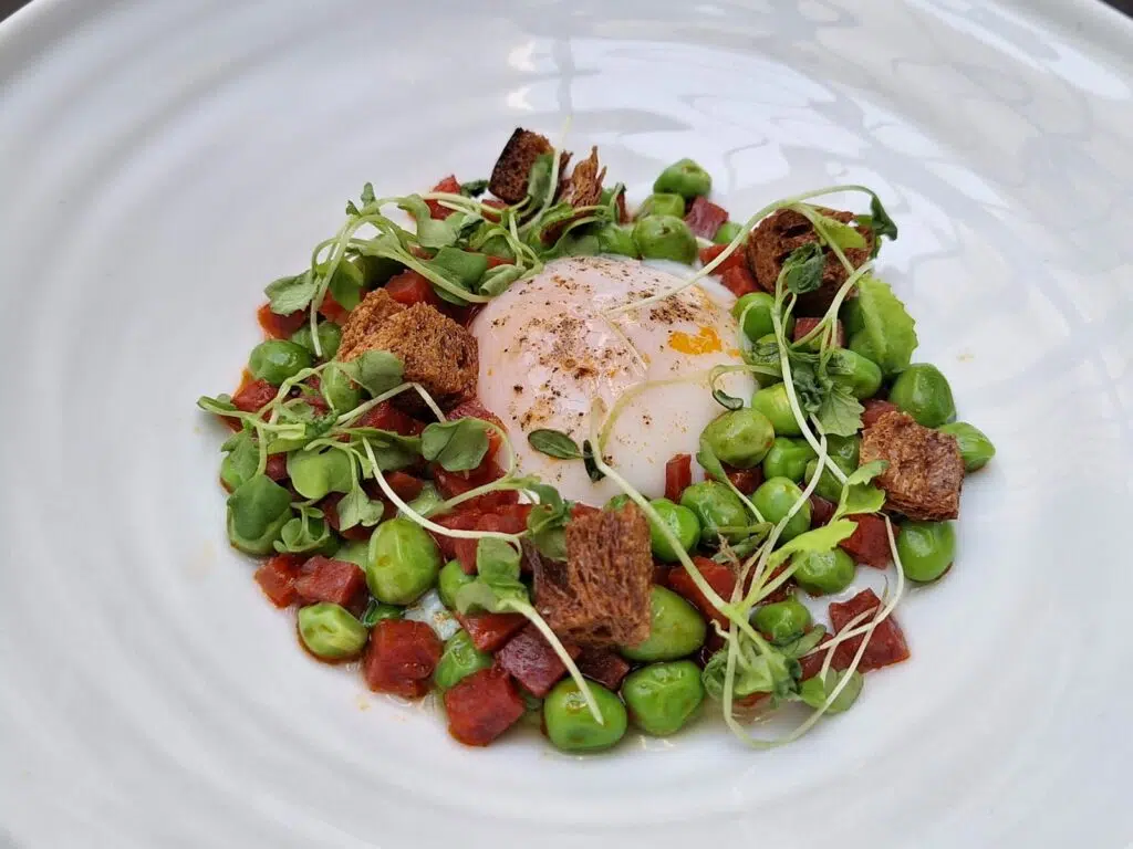 Ici, pas de carte interminable ni de prétendue “créativité” sans fond. Tout est pensé autour du produit, dans une approche durable et sincère. La carte, courte et changeante, célèbre la saisonnalité avec une sensibilité très juste, parfois végétale, souvent gourmande, toujours maîtrisée.