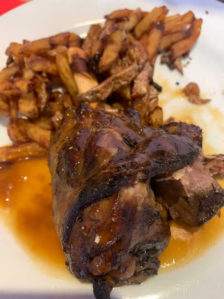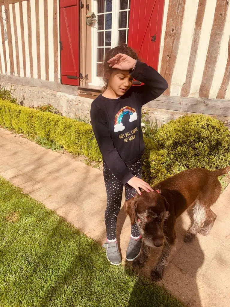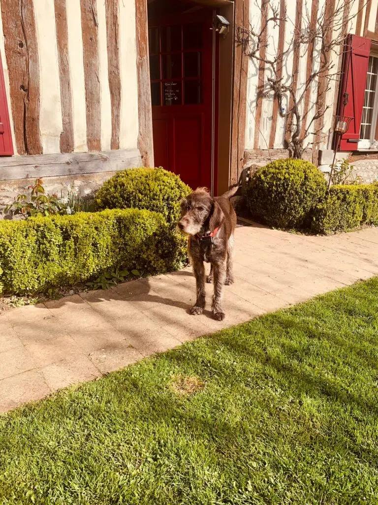 Nous avons également pu en apprendre davantage sur nos hôtes grâce au petit déjeuner compris dans le prix. Christian et Véronique nous ont accueillis avec joie et beaucoup de convivialité. Ils nous ont fait découvrir les coulisses de la maison: la ruche, le poulailler, le potager, le verger… Nous avons ainsi pu goûter aux produits locaux: miel, confitures, yaourt au lait de brebis. Les deux chiens Loupiac et Tweed ont été d’une compagnie réconfortante et amusante pour notre sublime Eva.