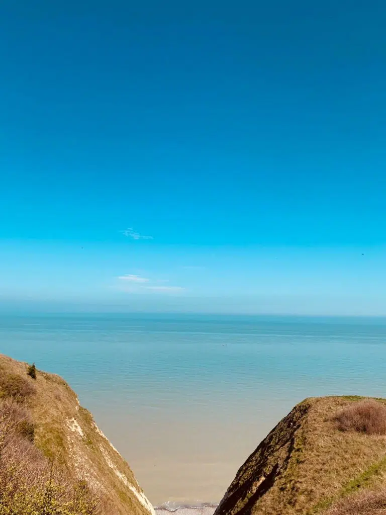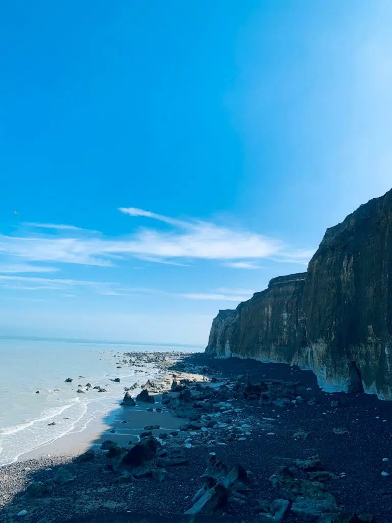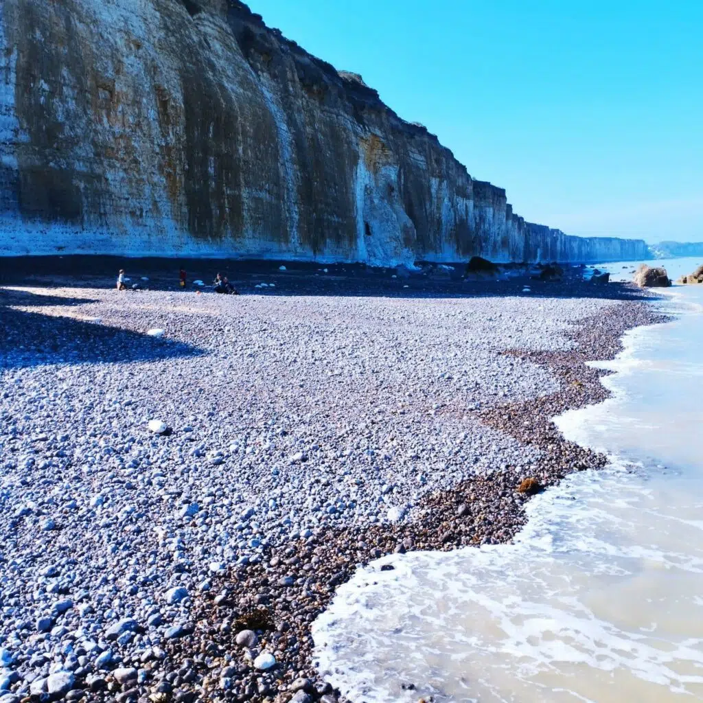Notre hôte nous avait recommandés Sotteville-sur-Mer, à quelques kilomètres de Veules-les-Roses. Ce petit hameau est d’un calme olympien et se distingue principalement par son escalier de 232 marches qui mène à la plage de galets. Là-bas, on y admire les falaises à perte de vue et les mouettes se poser ici et là. On y passe une matinée pour y admirer le bleu de l’océan et sentir l’air marin.