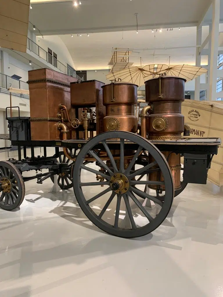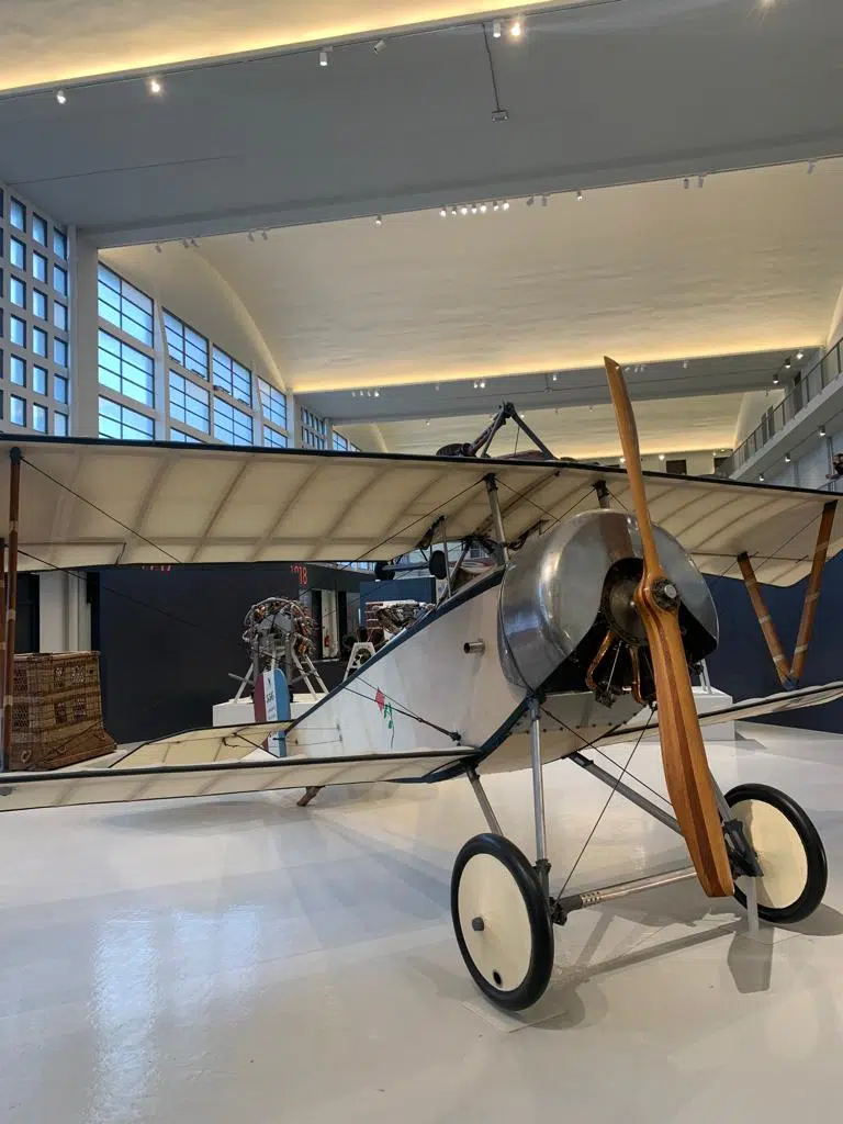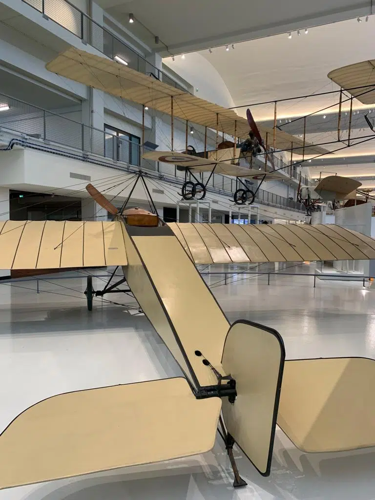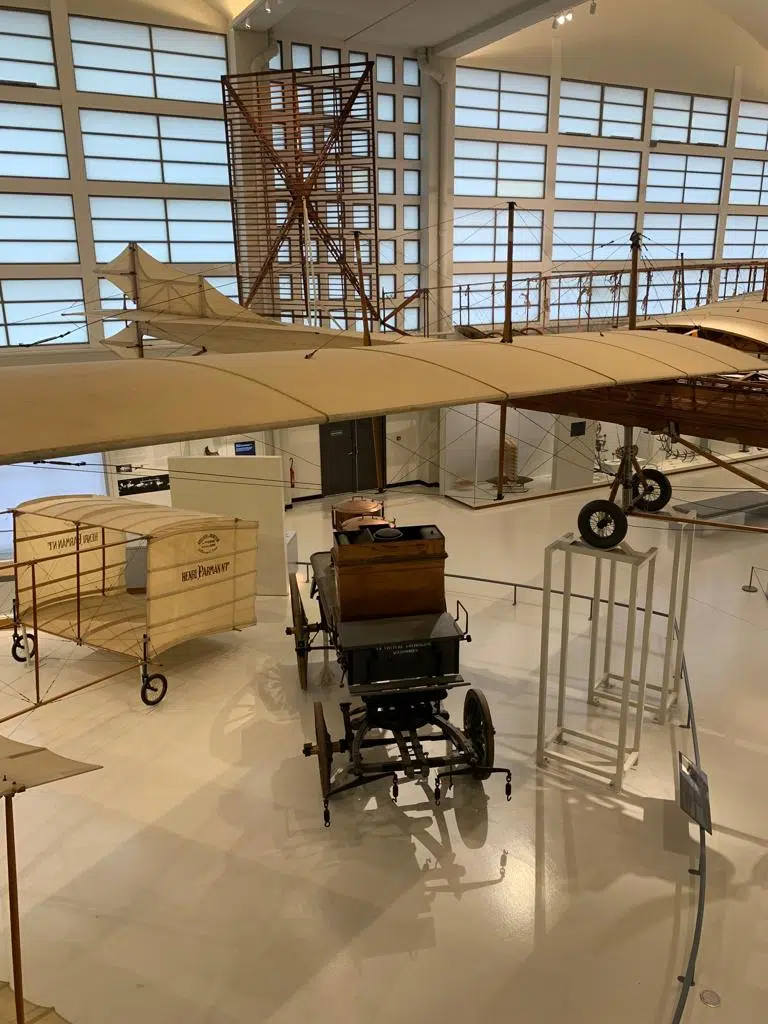 Dès l’entrée, on reste ébahis par l’immensité de l’espace. Ce gigantesque hall nous fait part des prémices de l’aviation, ses doutes, ses échecs mais surtout ses créations variées. On y voit des nacelles en osier, des ballons, des dirigeables et autres œuvres plus inventives les unes que les autres.