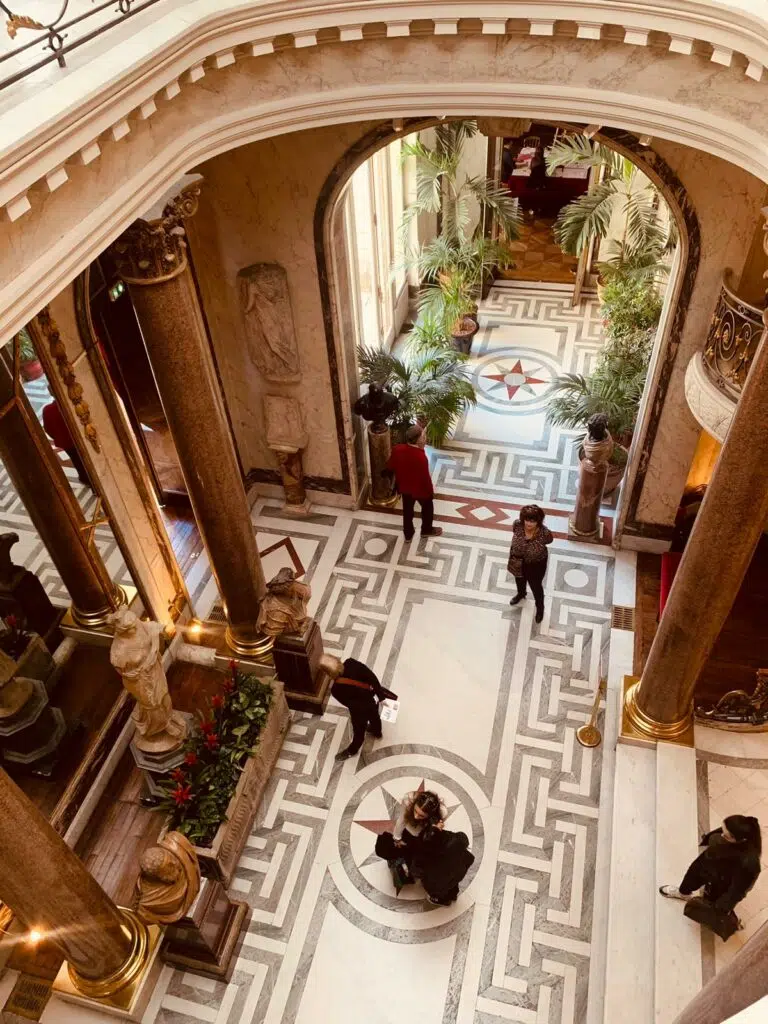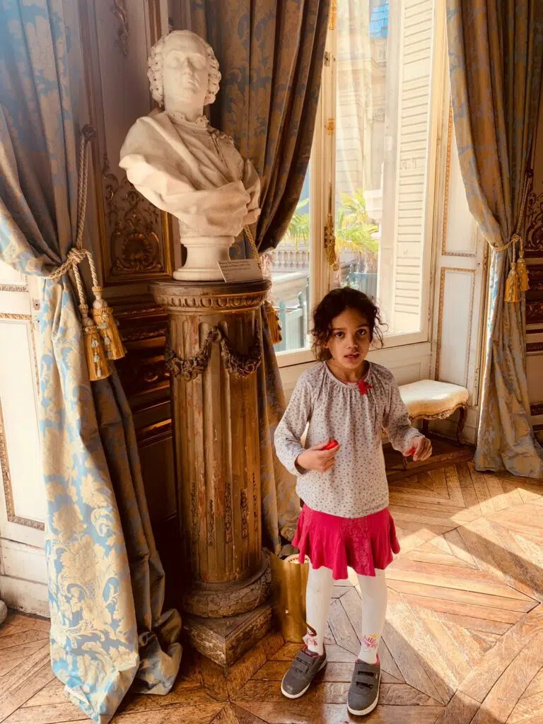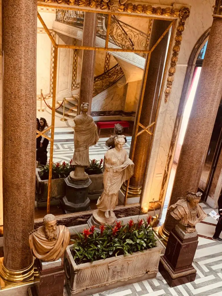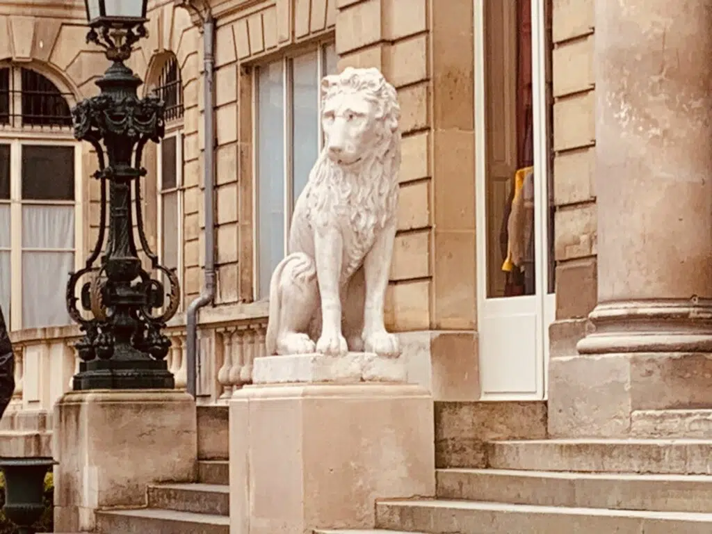 Quatre colonnes au style néo classique surplombent le perron et lui donnent cet air presque royal. Deux lions se regardent et se jaugent. Sur le côté, des sculptures animales se prélassent et décorent cette vaste entrée, monumentale. Je me suis assise avec ma sublime Eva, sur un des bancs afin d’en admirer le moindre détail et m’imprégner de ce lieu hors du temps, majestueux. Regardez autour de vous, les habitants des immeubles avoisinants doivent mesurer la chance qu’ils ont de pouvoir scruter la façade du musée Jacquemart-André. Une vue imprenable sur ce site d’exception.