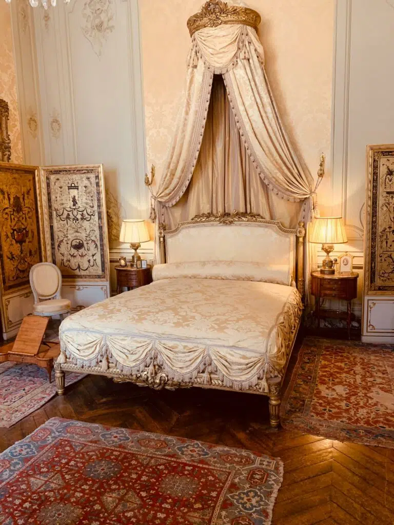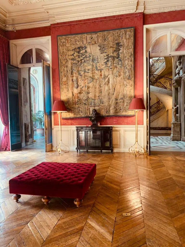 En pénétrant dans la demeure, nous sommes tout de suite happés par le gigantisme de l’espace et d’une suite de salons romanesques, au mobilier impérial, synonyme de vaste et d’opulence. Des tapisseries incroyables se mêlent aux dorures et boiseries authentiques. Ici et là, des peintures de Rembrandt ou encore Fragonard s’imposeront à vous. Impossible de s’en détacher, tant leur regard se fixe dans le votre.