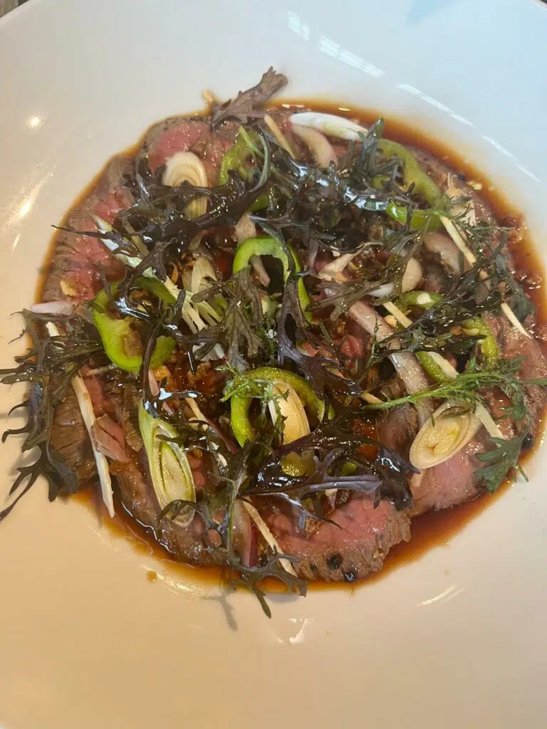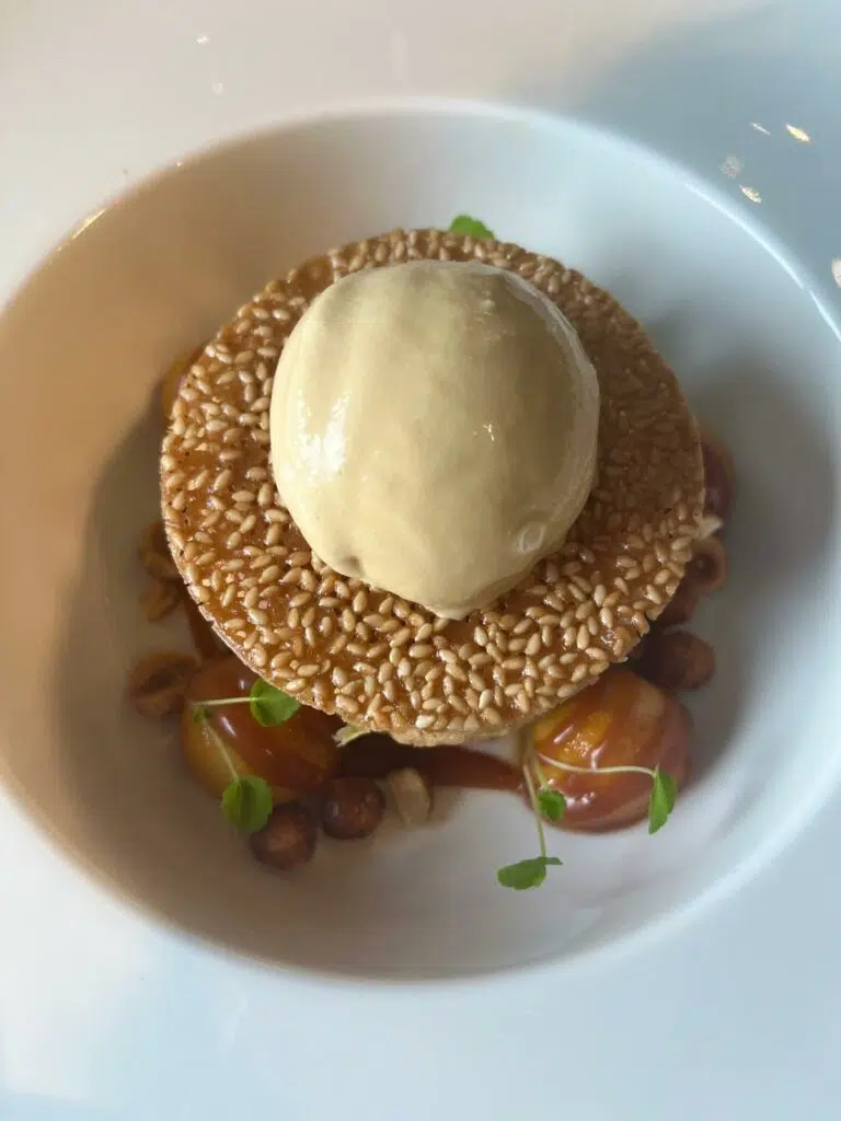 VOYAGE est à la croisée des mondes grâce à sa cuisine inventive, sublimée par le chef étoilé Mathieu Viannay. Chaque plat est une rencontre de plusieurs cultures et saveurs. L’ambiance est cosy et presque jazzy. En entrée, nous aimons particulièrement la fricassée de champignons, accompagnée de son œuf mollet et palette ibérique. Le séjour se poursuit et offre d’autres surprises à travers des plats à l’esthétique parfaite. Le thaï tigre qui pleure fait également un malheur grâce à un assaisonnement parfait.